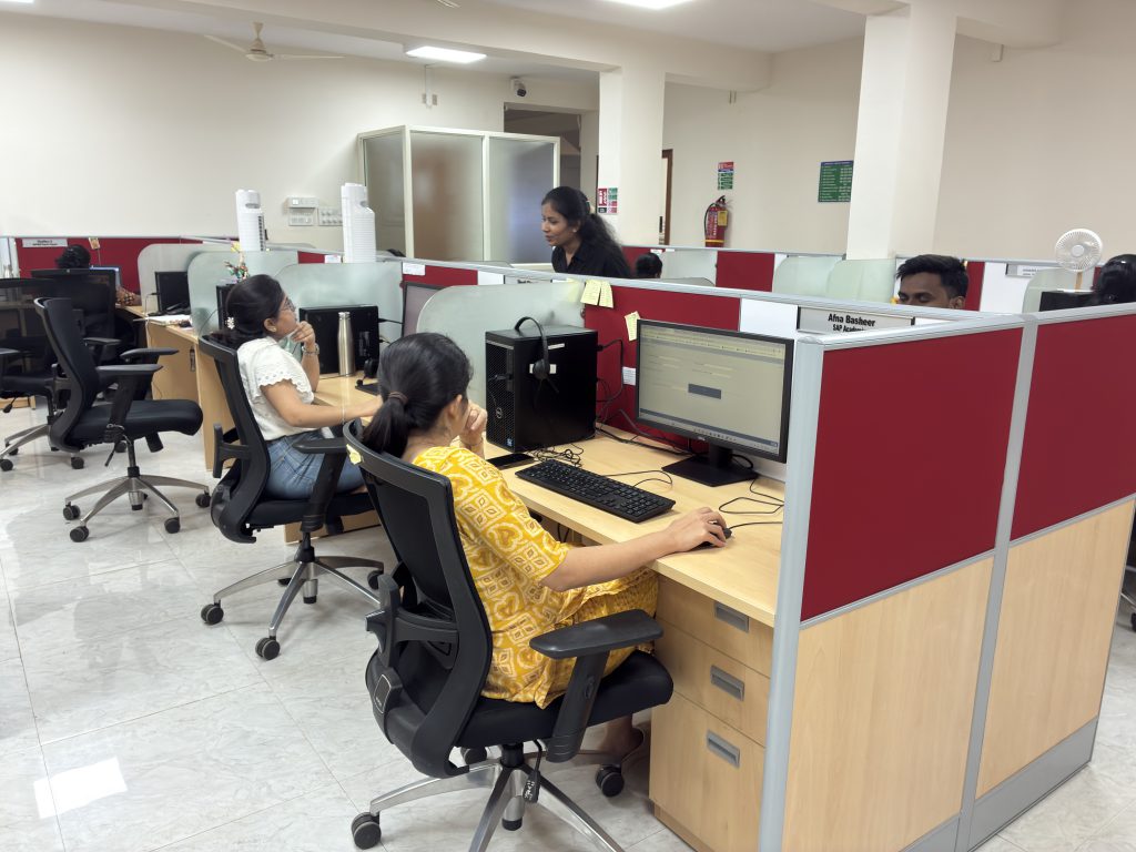 Additionally, Naaraayani oversees the building’s day-to-day logistics, expenses, settling cash advances, and raising requests for hardware and other necessities. What would have been stacks of paperwork once is now easily handled digitally. Much of that shift has been enabled by SAP, the campus-wide system that connects workflows across departments.
